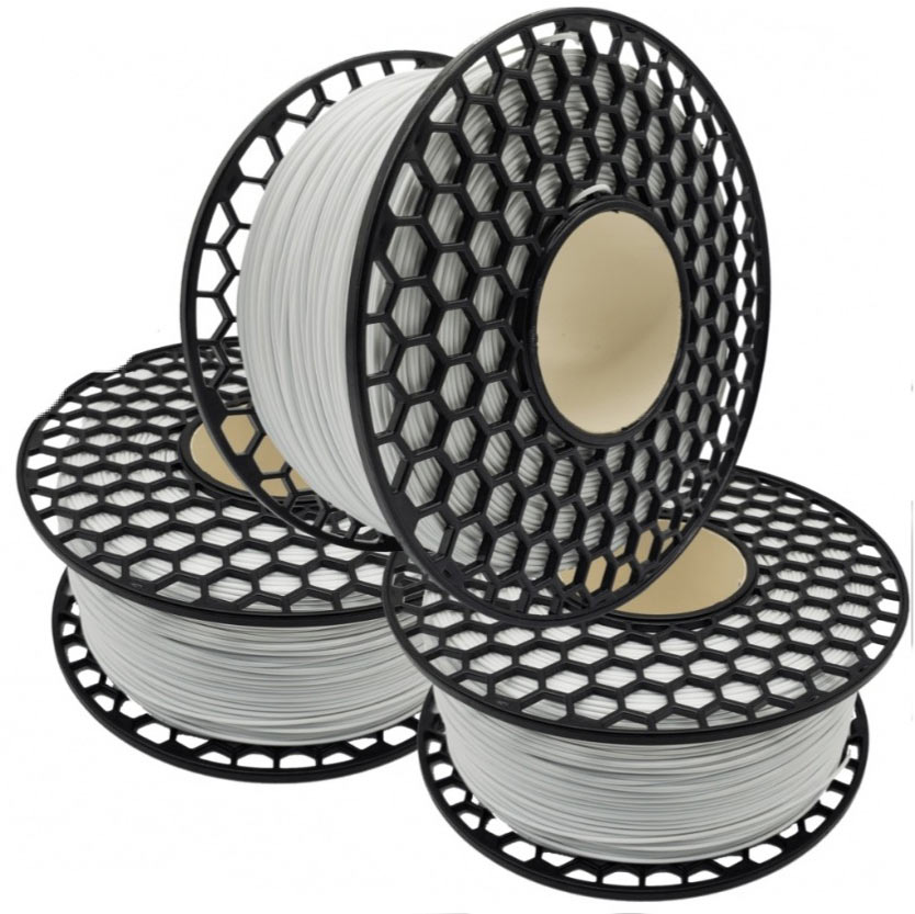 Os FILAMENTOS para impressão 3D são compostos de polímeros termoplásticos (plásticos que atingem um estado pastoso quando aquecidos) e são produzidos na forma de um fio contínuo que é enrolado em um carretel para venda.